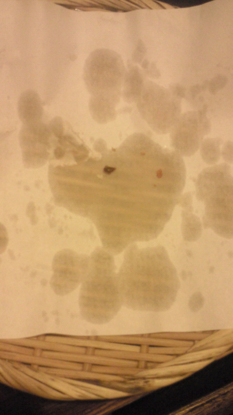 唐揚げの油あと。。発見したのは私では無いのですが、何だか面白くて写メしちゃいました。