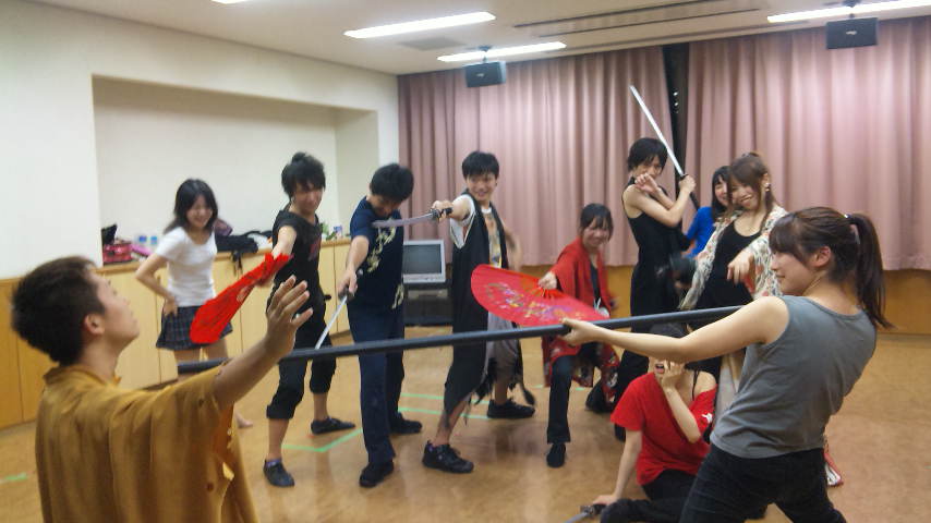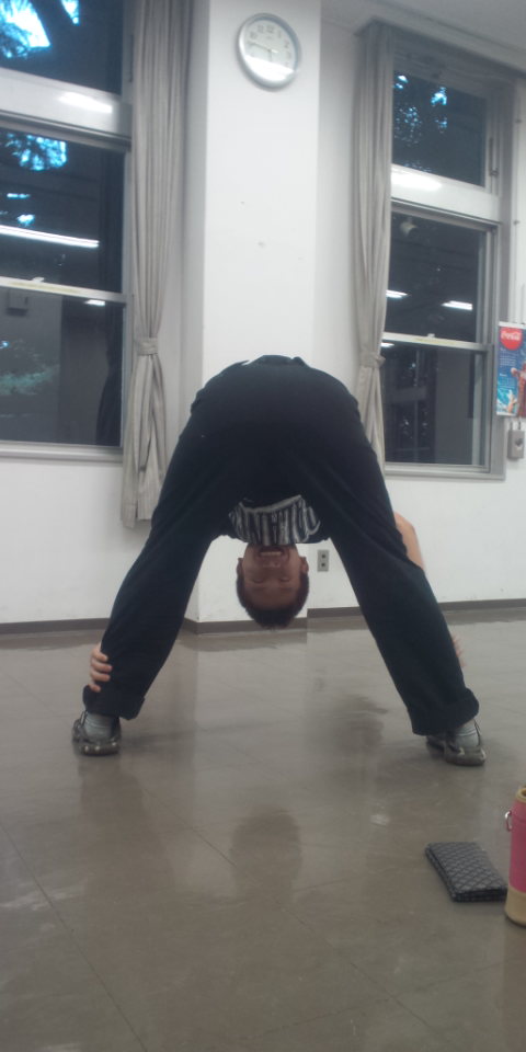 稽古中、なぜか自分の体を痛め付ける二人。